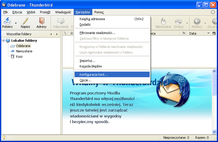 Start Pomoc Konfiguracja poczty Thunderbird |