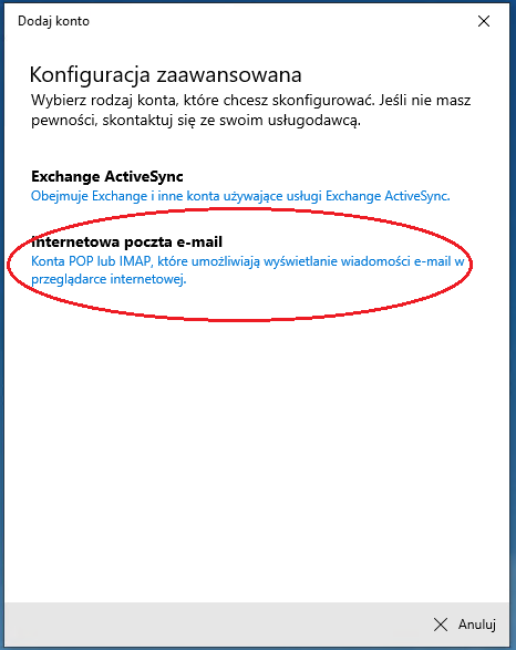 Aby skonfigurować klienta Poczta w systemie Windows 10