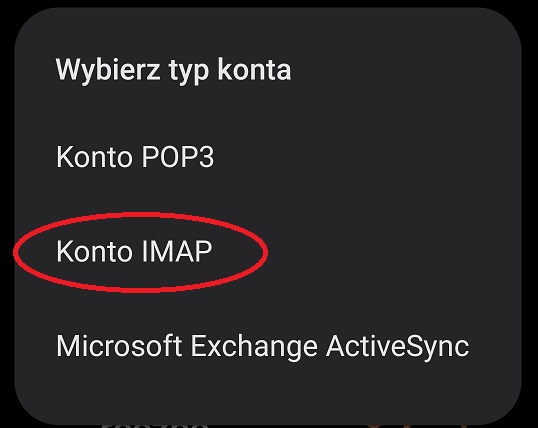 - Wybierz rodzaj konta IMAP.