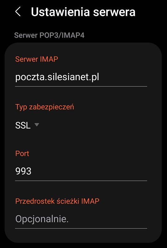 - Serwer IMAP: poczta.silesianet.pl