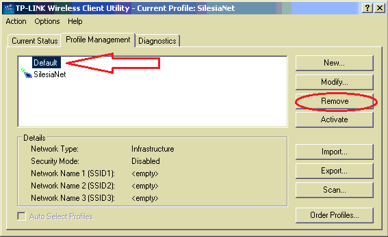 - W tym celu wracamy na zakladkę "Profile Management" i wybieramy poprzedni profil.