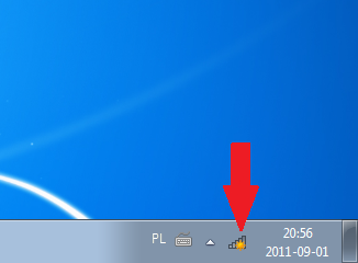 - Następnie odnajdujemy ikonę sieci w obszarze powiadomień.